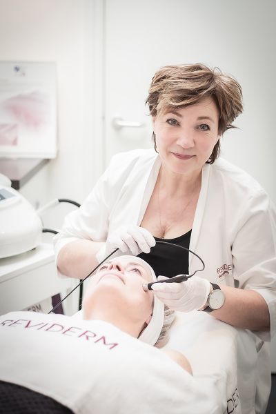 Anky werkt met Reviderm Technology apparatuur. ‘Mensen realiseren zich vaak niet dat de huid een levend orgaan is en dat we deze goed moeten verzorgen om later ‘mooi oud’ te worden. Reviderm Medical Skincare zorgt voor een gezonde, stralende huid zonder botox of fillers. Next level huidverbetering, dat wil toch iedereen? Er is keuze uit microdermabrasie - een pijnloze behandeling voor vermindering van rimpels, lijntjes, acnelittekens met verbluffend effect. Of Ultrasound Technology met Skintech Formula voor dieptebehandeling op celniveau; een behandeling die ontgift, de zuurgraad reguleert, de huidbarrière herstelt en een glad, ontspannen resultaat geeft. Of Microneedling met Skintech Formula. Deze verstevigt, werkt liftend, vermindert bovenliprimpels en (acne)littekens en geeft een prachtige glow. Andere krachtige Reviderm behandelmethoden zijn onder andere Chemische fruitzuurpeelings, Zuurstofbehandelingen en Skindesign contouring.’