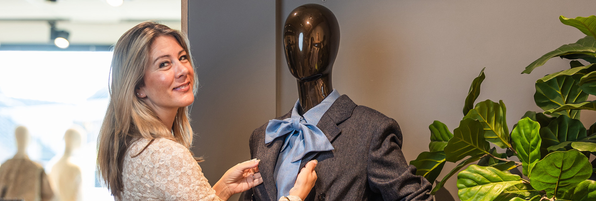 Bij Mull draait het om persoonlijke aandacht. ‘We adviseren niet alleen over pasvorm en stijl, maar kijken vooral naar wat bij de klant past. Wij geloven dat mode niet alleen mooi moet staan, maar vooral dat jij je er fijn in voelt. Dit seizoen verandert de mode zichtbaar. Waar vorig jaar zachte tinten en minimalisme de boventoon voerden, maken nu rijke kleuren en vernieuwende vormen het verschil. Kleuren spelen een hoofdrol in de damescollectie. We zien veel warme tinten zoals kastanjebruin, aubergine, donkerpaars en donkerblauw blijft altijd. Ook mocha mousse, dé kleur van het jaar, geeft outfits een rustige, warme basis. Gecombineerd met knalrood of dierenprints, zorgt dat voor een krachtige uitstraling,’ vertelt Marieke.
