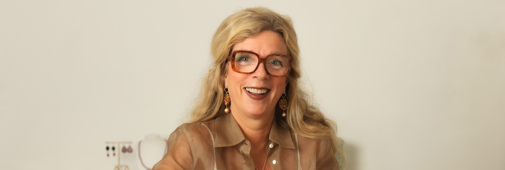 ‘Ik zie aan iemands kleur van de huid en het haar, welke kleur past. Het verschil tussen zilver of goud, de kleur en vorm van een steen en het formaat: het bepaalt of het sieraad jouw persoonlijkheid versterkt. Als een vrouw mijn ketting, ring, oorhanger of armband draagt, gebeurt er iets; van de glans in de ogen tot de verandering van expressie.’
